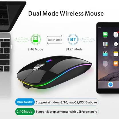 Dezful Rechargeable Croma Bluetooth mouse Wireless Ergonomic Optical Mouse with Bluetooth (Bluetooth, 2.4GHz Wireless, Type C, Black)