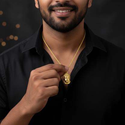 Gift Nest Elegant Gold Plated Gautam Buddha Pendant with gold chain for Men and Boys Gold-plated Stainless Steel Pendant Set