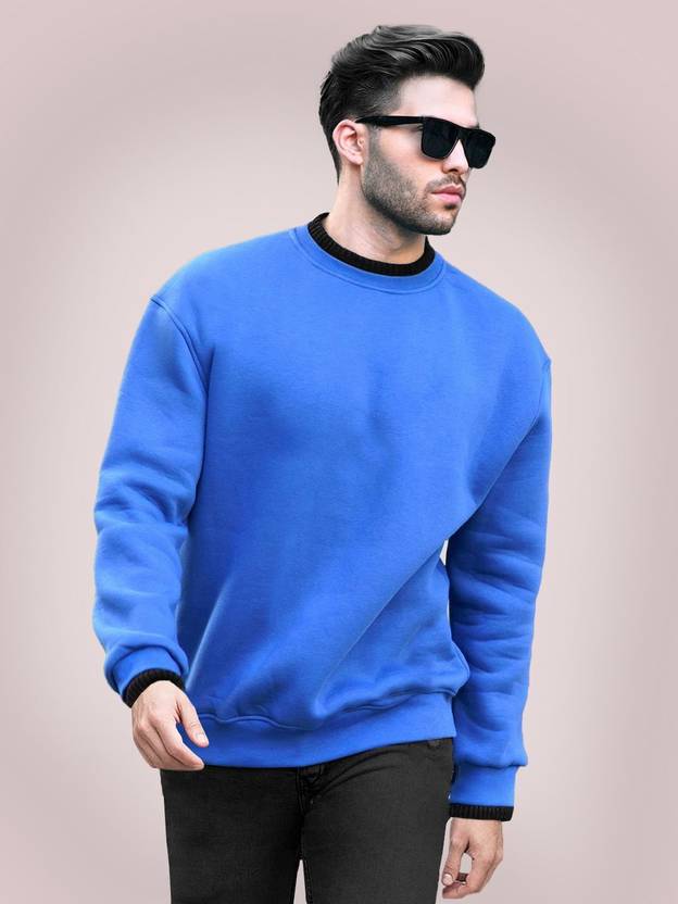 Men Solid Round Neck Blue, Black Sweater