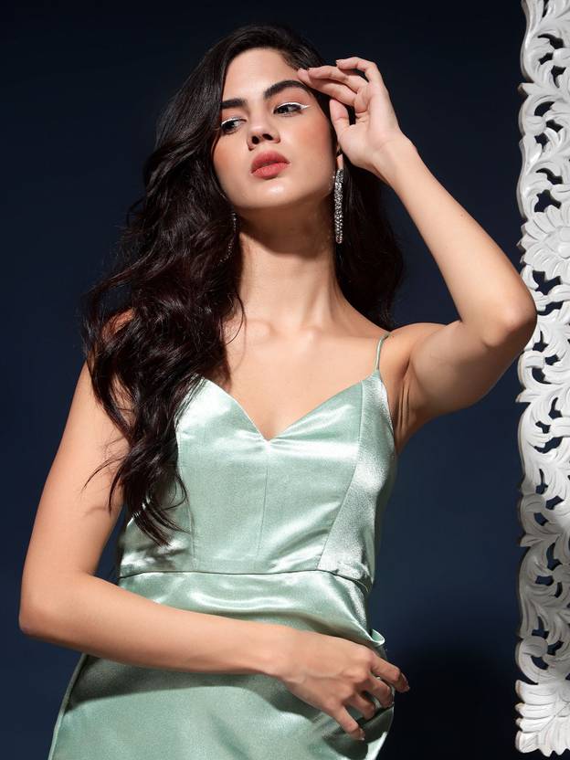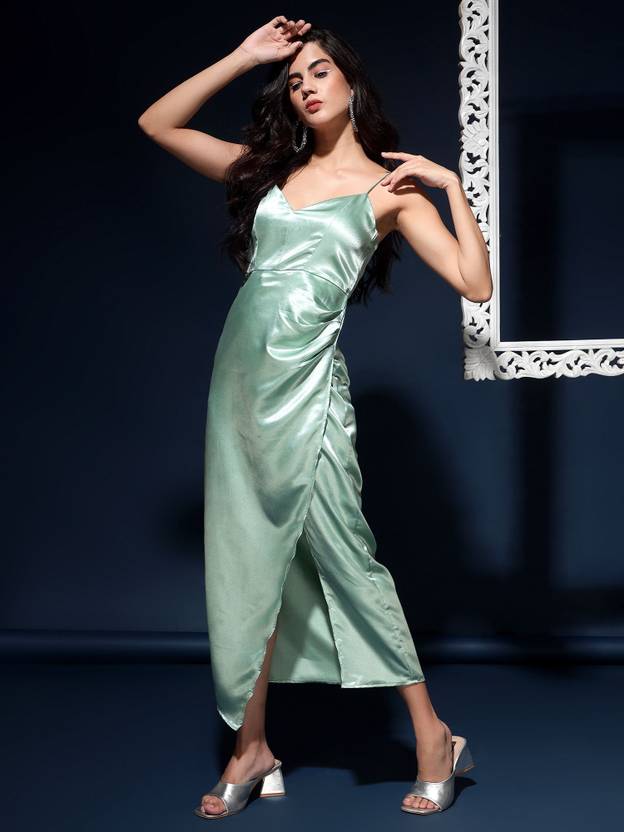 Women Ruffled Light Green Midi/Calf Length Dress
